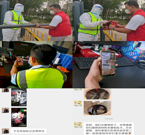 8月21日13时,漏点开挖出来,但由于小区物业现有备用抢修材料不全,又恰逢处于疫情特殊时期,城区所有建材门店已全部关闭,物业公司无法外购所需抢修材料,加之该小区目前已处于中风险地区。燃眉之急,米东区供水公司立即启动应急预案,第一时间与该小区所辖社区联系,与社区工作人员通力合作。由供水公司先行提供抢修材料及抢修设备,由社区将3米PE90管材、DN90电熔套2个、PE160哈夫节一个,电熔机一台运送至小区物业。供水公司技术员通过微信视频指导物业公司维修人员,采取热熔PE90管材,安装PE160哈夫节完成此次供水抢修任务。8月21日16时56分,颐和花园二期342户居民全部恢复了正常供水。