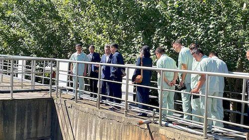 在信义污水处理厂调研期间,朴庸健一行深入水厂生化池、二沉池、碳源精准投加示范项目及大设备维修基地进行实地调研,并详细听取了信义污水处理厂、大设备维修基地工作情况汇报,朴庸健对水厂生产运营及管理等工作给予肯定。