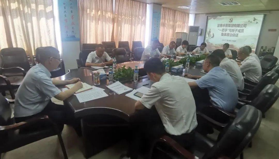 为深入贯彻落实《中共宜春市委印发<关于开展政治谈话加强对“一把手”和领导班子监督的实施方案》精神,8月25日下午,按照市综合行政执法局党委的统一部署,宜春水务集团“一把手”与集团班子成员在公司四楼会议室组织开展集体政治谈话。根据工作需要,本次集体政治谈话主要对照谈政治忠诚、谈政治立场、谈政治担当、谈政治能力、谈政治生态、谈政治自律及谈其他内容等七个重点方面展开。