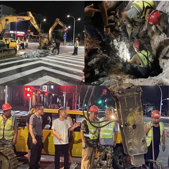 此管道在柏油路下方且埋深较大,公司领导与相关工作人员现场制定抢修方案,与施工人员一起展开抢修工作。抢修人员利用多年积累的经验,挖出故障水管排空管道积水后,对爆裂的管道进行切割、拆除、更换、连接、修复等一系列工作,次日清晨修复完毕并恢复正常供水。