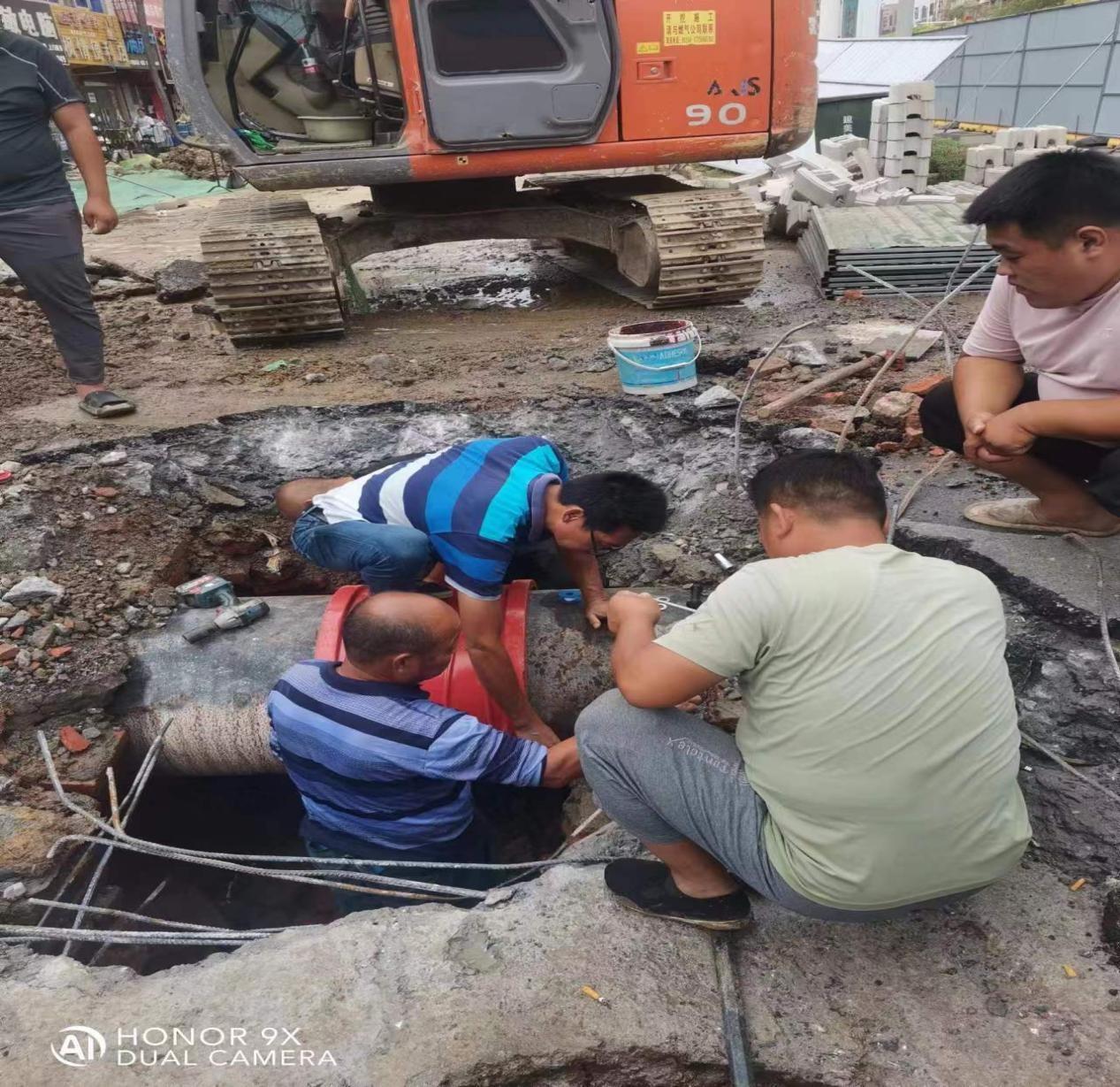 全椒县水务有限公司人员接到通知后,立马派出抢修人员10分钟内赶到现场,经过查看了解到原来是DN600管道损坏,维修人员拍照观察现场形势并关闭阀门四处,把损失降到最低,何总,袁经理,张主任也赶赴现场指导。同时指挥挖机进行现场清理作业,维修材料半小时到达现场,进一步争分夺秒保供水,经过约2小时的抢修,于上午12点半恢复供水,并清理了由于漫水引起的泥污,确保路面不因道路湿滑而影响交通安全,襟襄南路附近的居民的日常用水也得到了保障。