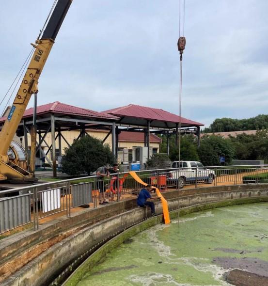 作为污水处理系统的重要组成部分,二沉池体积大、维修难度高、结构复杂,加上长时间使用,刮泥机故障较严重,长时间停用势必影响出水水质安全。为尽量减少维修时间,提高工作效率,各部门在领导指示下,紧急联动、分工配合,迅速组织应急抢修队伍,及时与维修厂家联系,连夜设计维修方案并开工。纵然白天烈日高照、热浪冲天,依然挥汗如雨、不舍昼夜,以高速度、高质量完成维修工作。