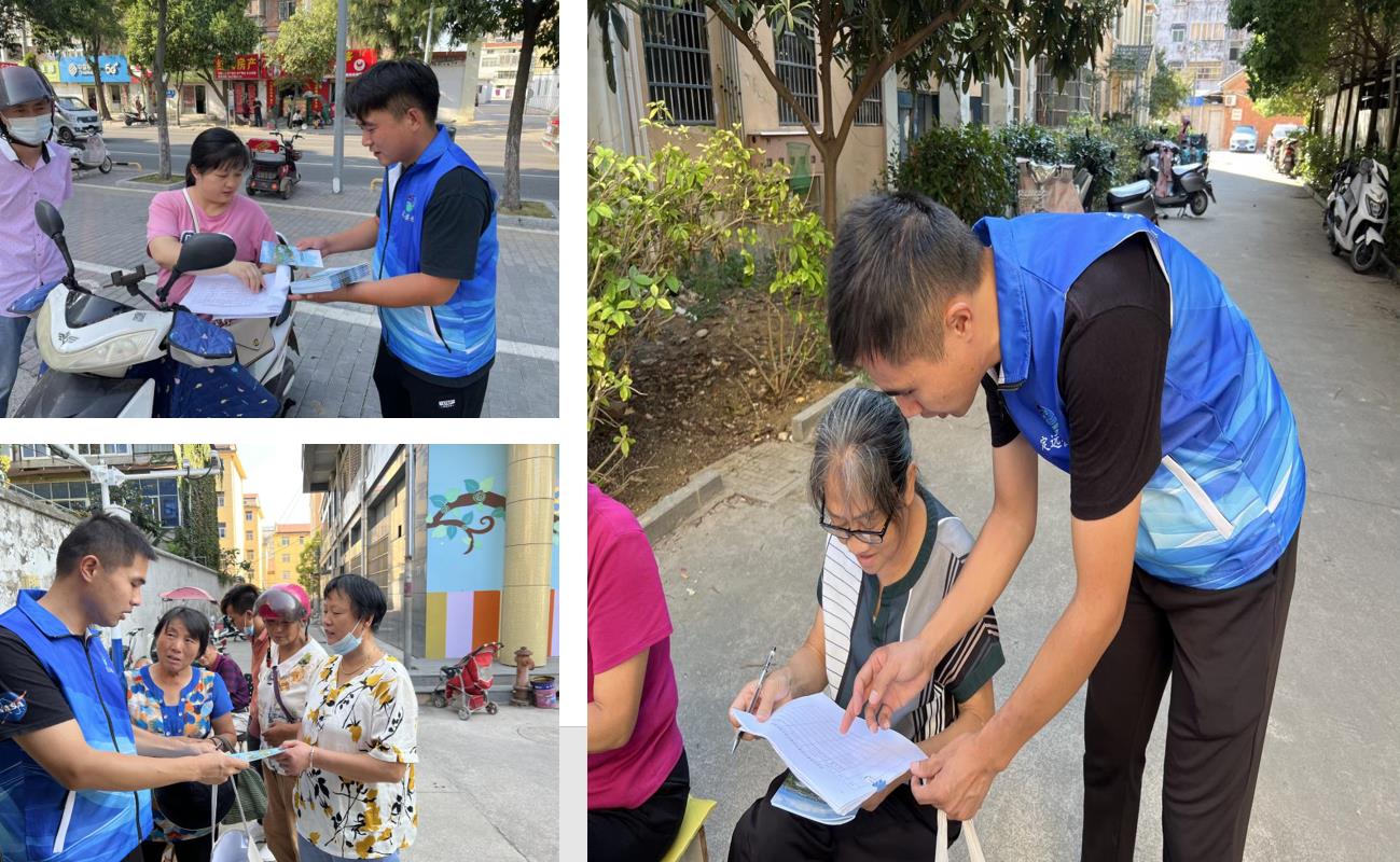 与此同时,志愿者两人一组,深入街道社区,宣传发放《定远市民文明手册》和创城社情民意调查问卷,向居民普及创建省级文明城市内容,认真记录和收集社区居民对文明创建工作的意见和建议。通过此次宣传,激发群众自觉提升文明素质的积极性和主动性,也为进一步开展创城工作奠定基础。