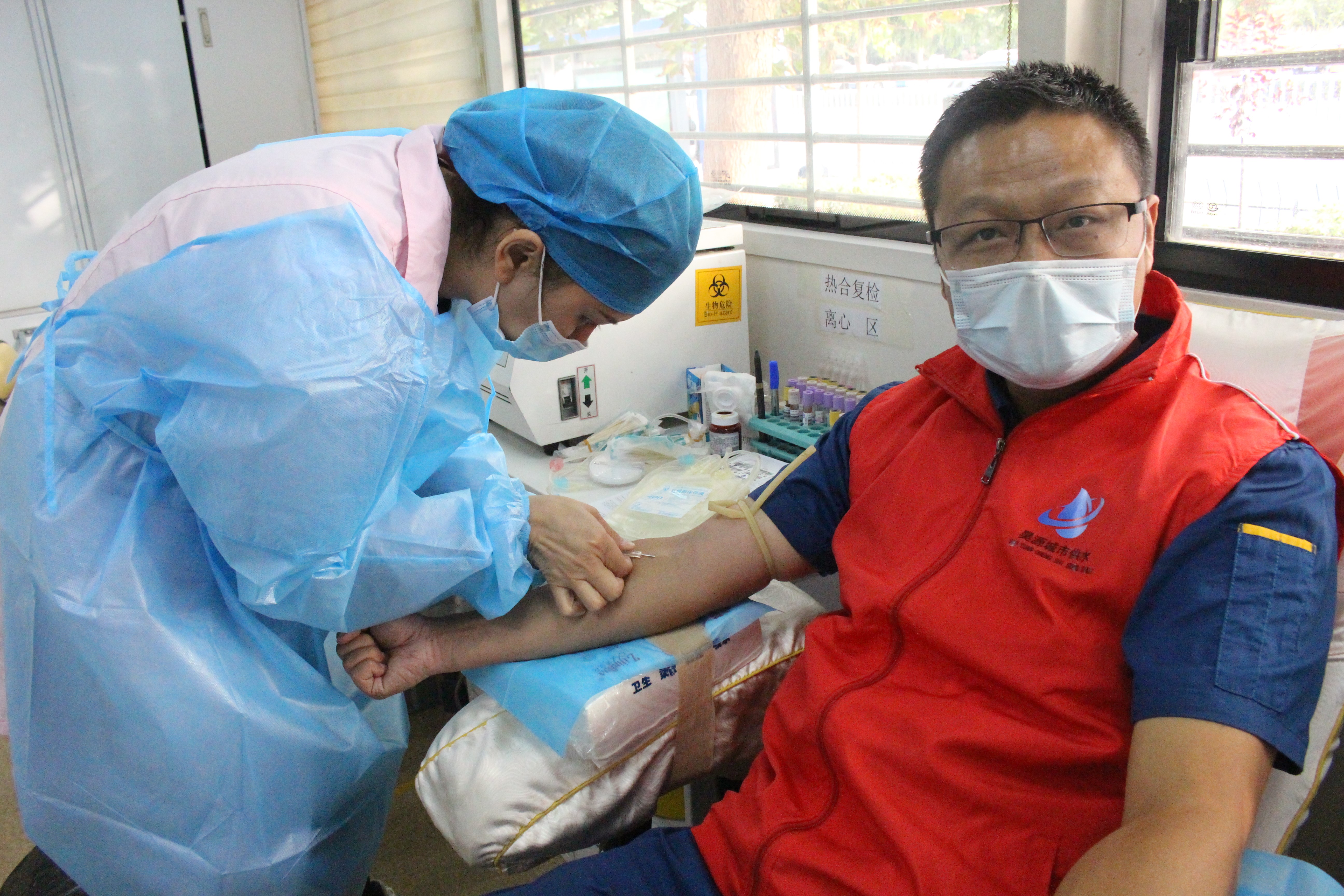 库车水务集团昊源城市供水有限公司 热血辉映国旗风采,庆“十一” “无偿献血”活动