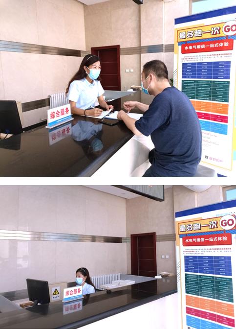 东营市鲁辰水务有限公司客户服务中心在服务大厅悬挂了水电气暖信一站式体验标识,设立综合受理窗口,精心梳理编制事项服务指南,统一制作二维码、公布业务范围、办理程序、办理方式和业务咨询电话,统一提供《水电气暖信报装服务联系单》及线上服务,增加水电气暖信报装、变更、咨询、报修等选项功能,用户自愿勾选相关业务,客户服务中心服务大厅登记信息作为水、电、气、暖、信专业单位办理业务的支撑材料,实现水电气暖信业务“一网受理,一次办多事”,用户只需填写一张表单或在网上申请即可完成业务受理,真正实现了用户“最多跑一次”