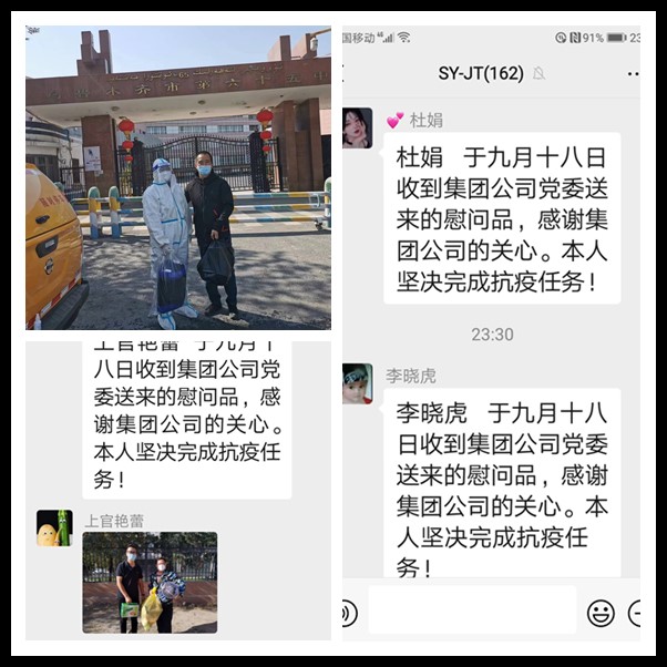 9月18日,建投公司下沉社区人员杜娟、上官艳雷、李晓虎等收到了集团公司党委安排采购的慰问品后,纷纷在水业建投工作群中表达着感谢的心情、表达着一定会认真完成工作任务的坚定态度。