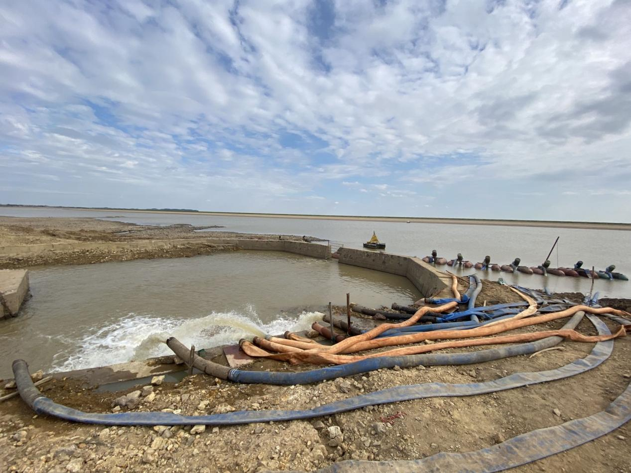 在鄱阳湖入长江之口的湖口县,江西水务下属湖口润泉公司主动谋划,选择契合湖口县实际的供水应急路径,投资约300余万元实施取水口应急延伸工程,增加临时设备将源水取水管向鄱阳湖中心进行延伸40米,用以保障在较低水位时能取到水。建设内容主要包括水下清淤、抛石、电机水泵机组、低压配电柜、启动柜、水下管道和设备安装等。目前,工程已完成了水下清淤、钢管焊接、变频柜及水泵调试,累计管道底层抛石作业约500立方米,预计在9月下旬完工,可大大提升湖口县抵御持续旱灾保供水能力。