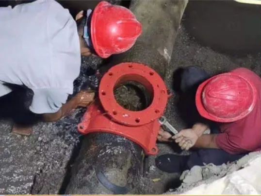 在公司领导的指导下,党员突击队的同志们斗志昂扬,不断挑战自身精力和体能极限。“原管道停水完毕、泄水完毕、主管道接驳完毕、主管道冲洗开始、支管接驳开始、3号支管接驳完毕……5号完毕……9号……”,进度情况通过对讲机的电波在施工沿线不断传递 。13日凌晨5时,伴随着最后一个支管开阀通水完毕,历时9个小时,40余人参与,完成DN400管道冲洗1700余米,DN400--DN100的新旧管道接驳点18处,砌垒、修补阀门井、管道挡墩12处,提前2个小时圆满完成任务。