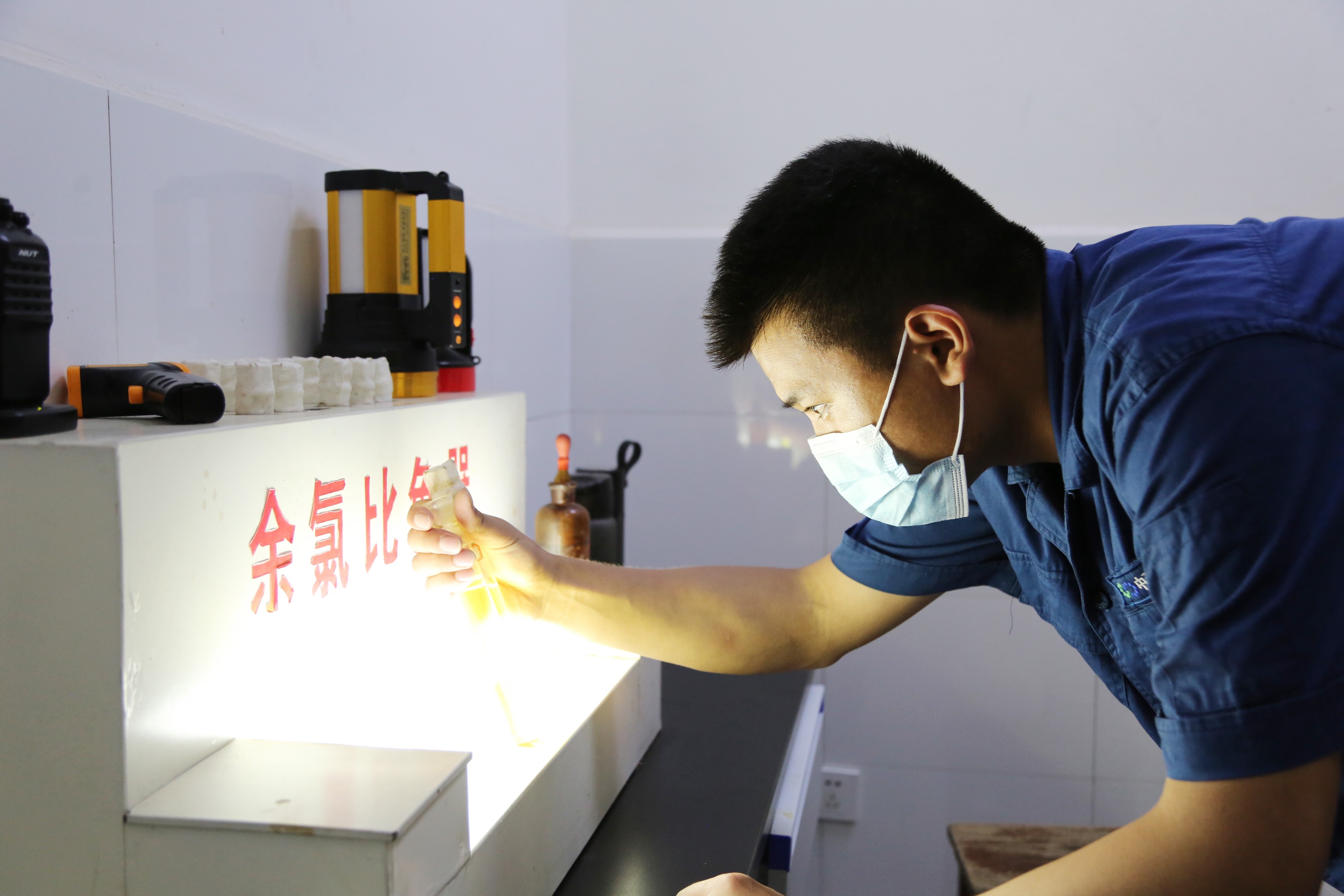 在暑期、汛期和夏季高峰供水来临之际,水质检测中心严格执行国家标准要求,落实“两级管理三级检测”制度,严把自来水质量关。水厂班组人员配合厂化验室每2小时进行水源水、沉淀水、过滤水、出厂水的余氯、浊度、pH值的检测查验,适度合理调换天河应急水源,正确掌握混凝剂加注量;水质检测中心每月上旬和下旬对市区50个管网点全面进行检测,根据检测结果通知黑虎山水厂调整出厂水余氯投加量及中途加氯点加氯量,保障全市管网水质,中旬对原水、出厂水、管网水进行全分析检测。同时,公司在原水进水管、滤池、送水泵房及市区加氯点安装了在线水质检测仪,对原水五项参数、总磷、总氮以及出厂、管网水的浊度、pH值、余氯进行实时检测,真正实现了从源头到龙头的全过程质量监测,充分发挥水厂“瞭望哨”的作用,密切关注原水水质变化,切实做到水质问题早发现、早预警、早处置,科学高效应对夏季复杂多变的原水水质。确保出厂水优质、合格,切实做到让广大市民放心饮用。