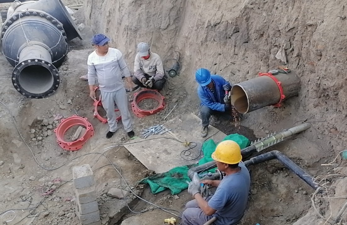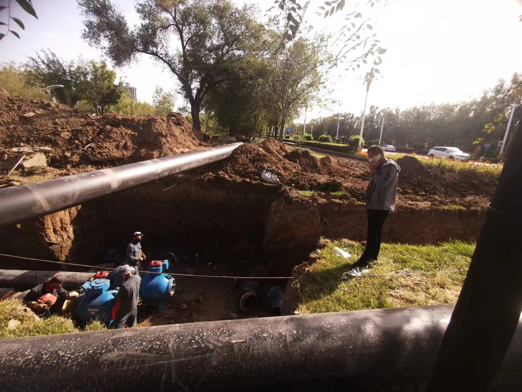 2022年9月21日下午4时,新疆昌吉州统筹城乡基础设施建设示范工程奇台县输配水管道工程“最后一公里”场面异常忙碌,亚行管道三水厂段同县城一水厂进行连接。供排水公司通过媒体提前对外发布一水厂供水管网覆盖区域局部停水通知。