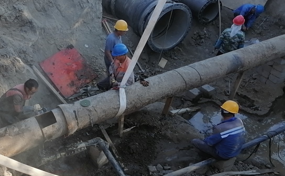 供排水公司立即启动应急预案,经理马维新迅速部署、坐镇指挥,公司全体职工众志成城筑牢疫情防控“水防线”,争取再最短时间保障县城用水安全。公司迅速成立以党员为主线的抢修队、客户服务中心。工程管理部、用户管理部、生产运行部、后勤保障部等6个部门,分片负责供水管线及其阀门井、水表井等附属设施的抢修和维护等工作。经过现场查看,判断漏水点为PVC200的主管线,根据管线受损现场制定抢修方案,有序开展抢修工作。晚上10时,维修人员还在对破损管道进行最后的清理,由于管道所处位置埋设的电缆、光纤较多,管道下方只能靠人工下到管沟内一点一点抠出来。正值深秋,夜间较冷,抢修环境艰苦超乎想象,“干我们这行就是得泥水下得去,再苦再累也要尽最大努力保障供水。”工程管理部负责人徐嘉禄说。