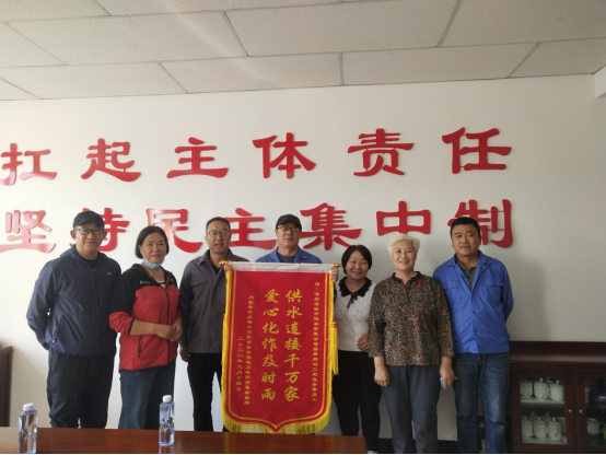9月21日上午,供水公司收到内蒙古明庆物业有限责任公司电力花园项目部员工以及业主委员会和部分业主代表送来的一面印有“供水连接千万家,爱心化作及时雨”的锦旗,肯定了供水公司抢修人员认真、负责的工作态度和优质的服务质量。