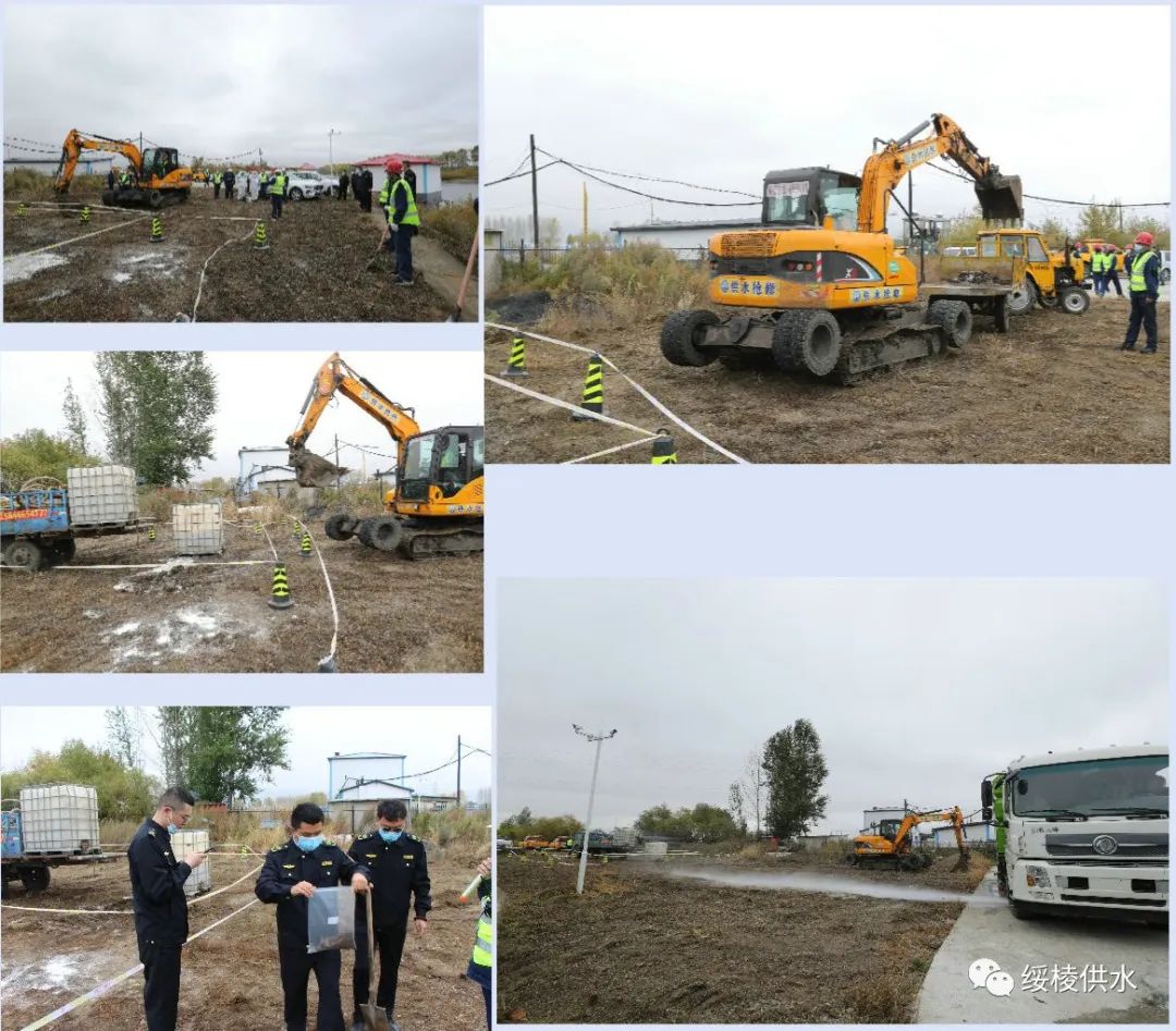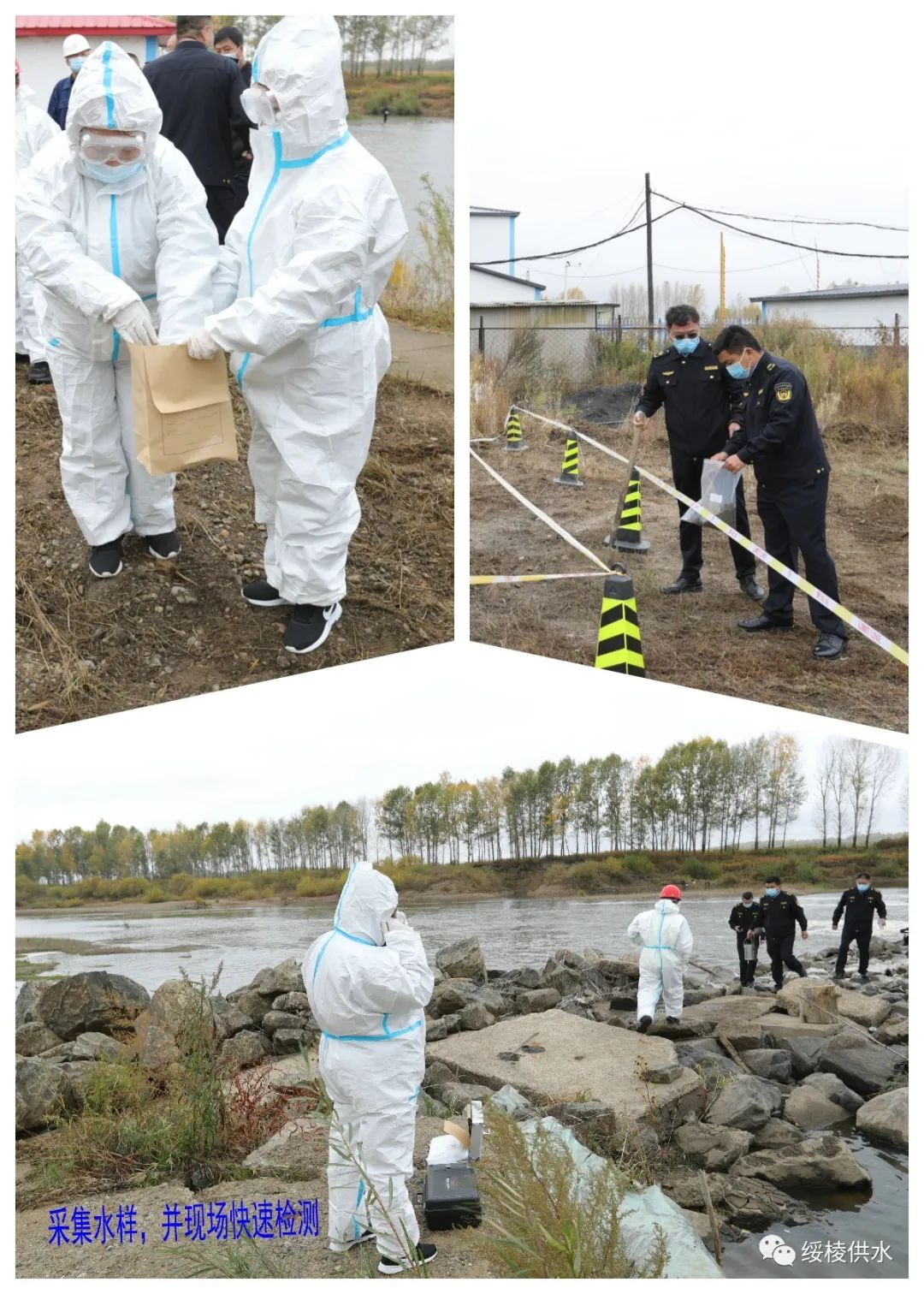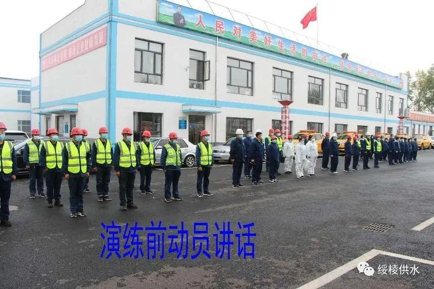 随着国庆节来临和党的二十大即将召开,为贯彻习近平总书记“发展要安全”重要指示精神,按照李克强总理批示要求,以及9月20日省委书记许勤在省委常委会上“以时时放心不下”的政治责任感做好各项安全生产工作,胡昌升省长在省安委会全体会议上“全面落实党中央、国务院决策部署和省委常委会要求,坚持人民至上、生命至上,高效统筹疫情防控和经济社会发展,紧绷安全生产这根弦,强化风险隐患排查,做好当前安全生产各项工作,为党的二十大胜利召开营造安全稳定的良好环境”的讲话精神,落实县委全县安全稳定暨疫情防控工作会议决策部署,保障全县供水安全,9月24日上午绥棱县自来水有限公司组织58名员工、15台车辆和机械与县生态环境局举行水源地保护区内污染事件处置联合演练,同时县环卫部门支援1台撒水车配合本次演练。演练假想努敏河第一水源地附近发生农民农药运输车辆侧翻,农药泄漏,可能造成水源污染,公司接到报警后及时报告县生态环境局,启动相关应急预案,并及时组织相关人员及设备现场处置。