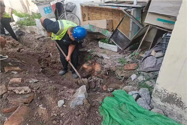 施工人员对现场排查后发现施工难度较大。一是因管道年限久远,无管道图纸,原主管道只能摸索寻找,困难较大;二是硬化水泥地面且与楼体间距窄,开挖难度大;三是楼内住户多为老人,为保障尽快通水,施工工期紧。