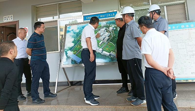 近日,红河州副州长张珺带队到石屏县自来水厂开展防震减灾工作调研,县委常委、副县长罗亮等领导陪同调研。