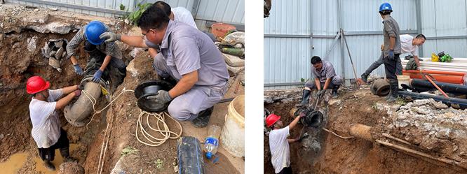 根据华宁县“美丽县城”工作推进要求,需将宁阳路延长线与文化路交接口处DN150市政给水管降低至原地面下2米。9月21日,华宁县供排水有限公司应县美办要求,立即组织相关工作人员到现场进行改管。宁阳路延长线与文化路交接口处主供水管关系到华宁县第三中学、宁秀街沿线、城关二队、三队、四队、东门沿线及周边用水户用水,华宁县供排水公司供水人顶着烈日争分夺秒改给水管道。