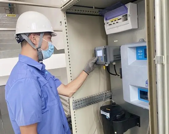 技术人员检查水厂水质在线监测设备。 北京市自来水集团供图