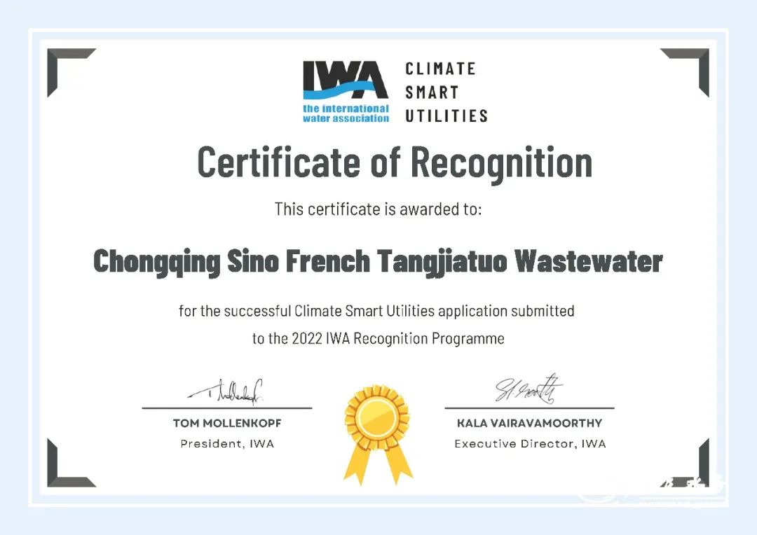 近日,在丹麦哥本哈根举行的国际水协会世界水大会上,重庆中法唐家沱污水处理有限公司入选“气候智慧型公共事业单位”。