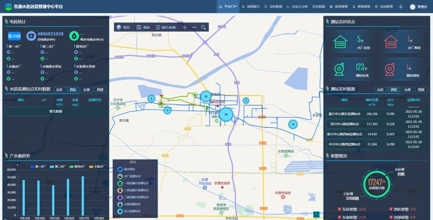 通过各系统应用使鲁源水务在水源地取水、水厂制水、管网输水、用户用水等各个环节,实现全优化生产调度,保障高效供水,促进节能降耗,实现智慧决策,降低产销差,提高服务水平是水司实现智慧化运营的重要途径。