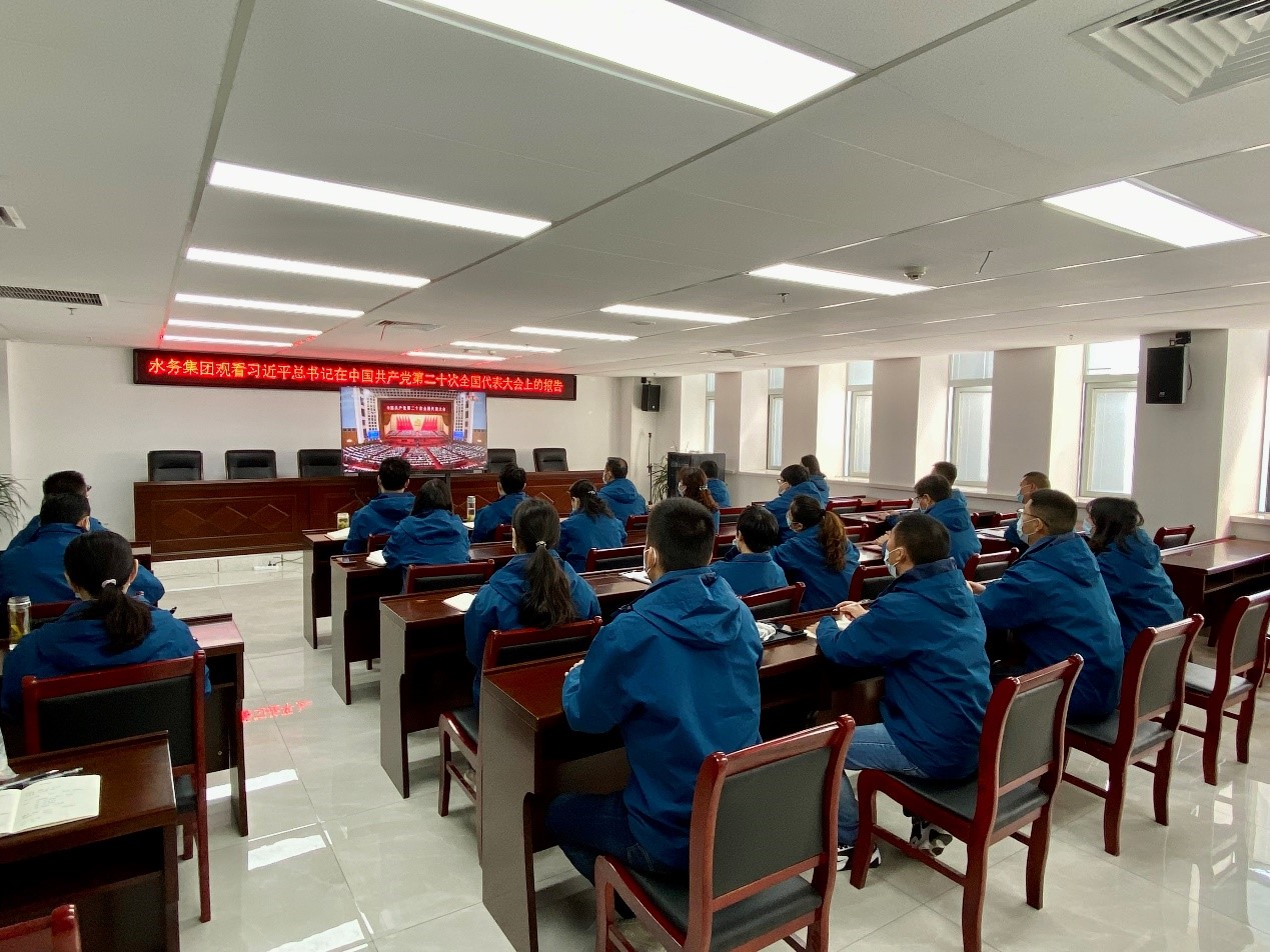 水务集团组织党员干部职工认真观看党的二十大开幕会盛况,认真聆听、学习习近平同志代表十九届中央委员会向大会所作的报告。