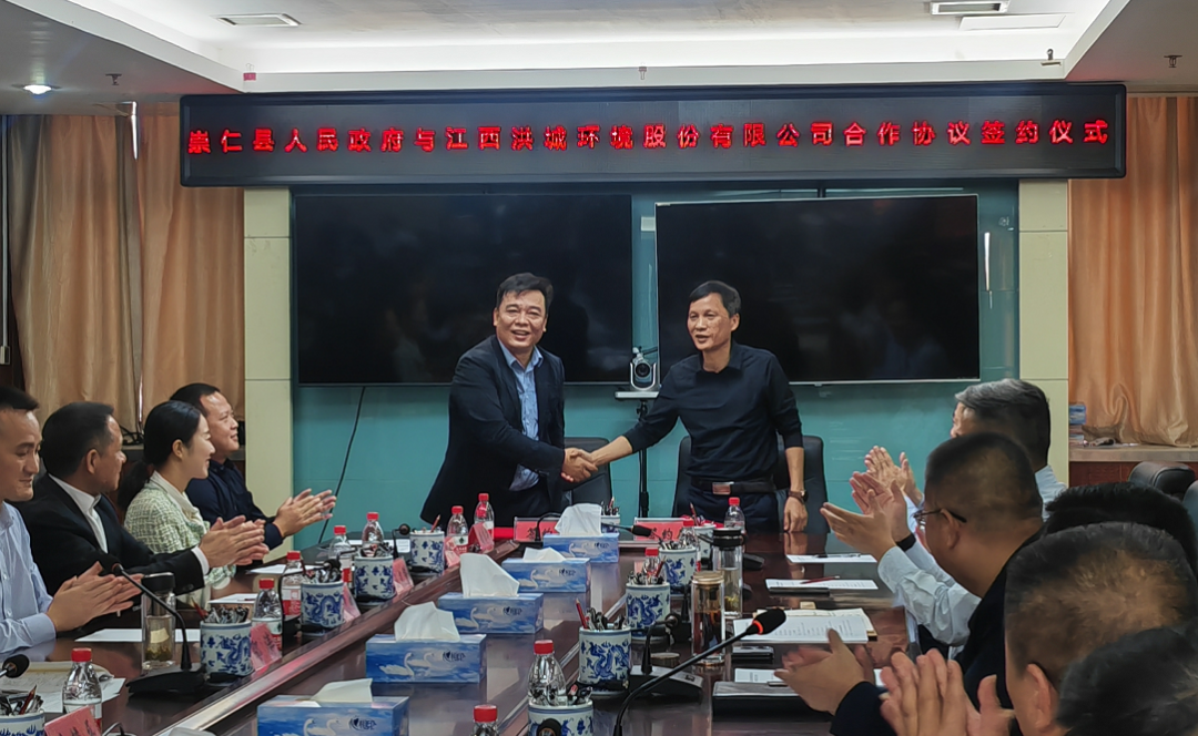 洪城环境与抚州崇仁县签订生活污水处理及城乡供水一体化项目合作协议