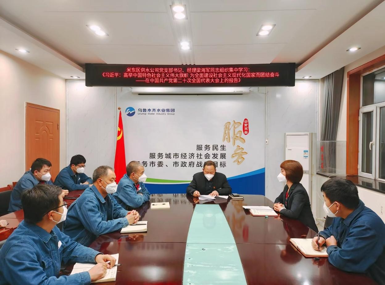 为深入贯彻党的二十大会议精神,切实把思想和行动统一到党的二十大精神上来,乌鲁木齐水业集团米东区供水公司迅速行动,在全面统筹上下功夫,在细化举措上出实招,以专题学、集中学、谈感悟、自学交流等多种形式,掀起学习宣传贯彻党的二十大精神热潮,努力将学习党的二十大会议精神转化为指导实践、推动工作的新动力。