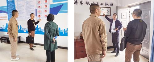 州调研组一行在公司工会主席马庆云的陪同下参观了公司劳模创新工作室、职工技师工作站、师带徒工作室。马主席向调研组介绍了公司开展产改工作的具体情况及提升工作效率的措施。