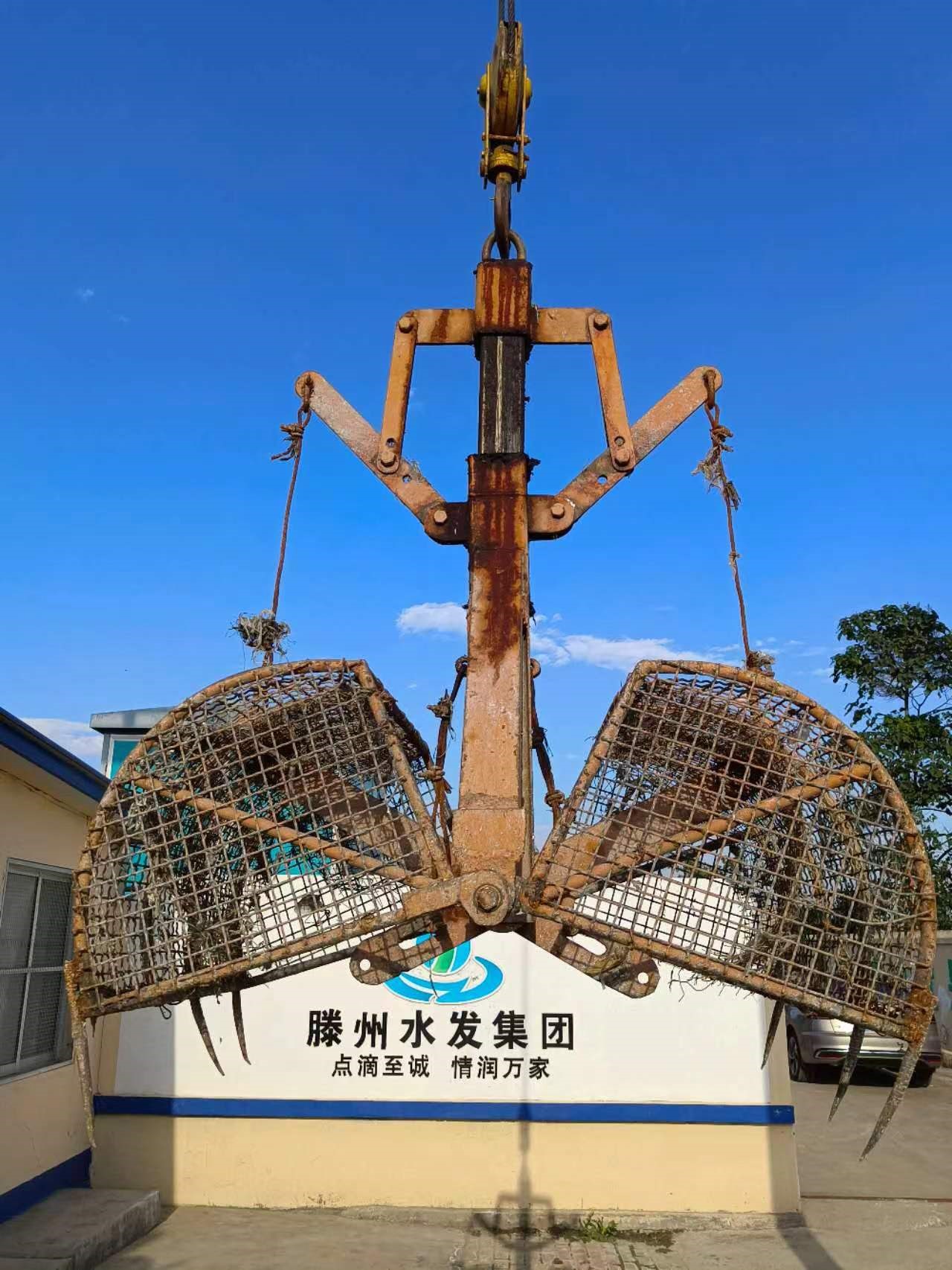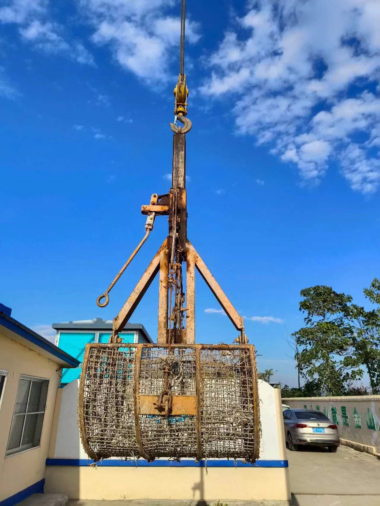 滕州市汇通排水有限公司共管理7座雨水泵站,2座污水提升泵站,泵站蓄水池深约5-10米,蓄水池内垃圾较多,平时打捞清理时大多采用人工下井打捞的方式,工作效率低,施工安全风险大。为提高工作效率,降低施工安全风险,滕州市汇通排水有限公司根据泵池清理打捞实际情况,组织专业人员经过研究讨论→绘制草图→加工制作→地面试用→修改完善→泵池内试用→再次修改完善→实操使用等多道工序,历时20多天发明制作了“泵池垃圾清理专用抓斗”。