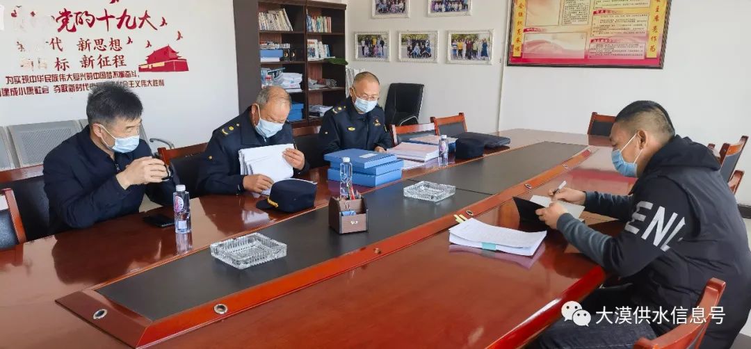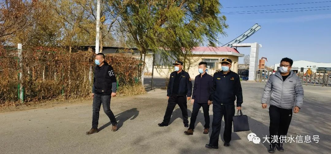 2022年11月11日,为贯彻落实局务会会议要求,旗城管局安全生产、疫情防控工作专班深入额济纳旗大漠供水公司,开展专项督导检查工作,供水公司总经理李戈、副经理王鑫陪同。