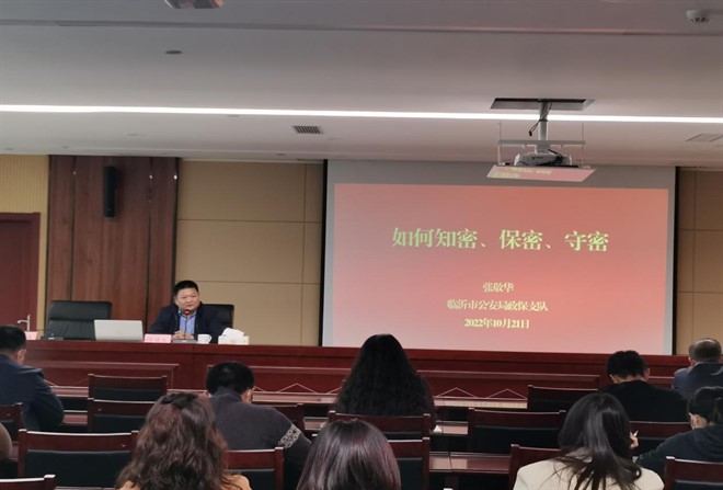 为进一步增强广大干部职工的保密意识,提高防范泄密的风险能力,近日,临沂市水务集团有限公司第71期水务大讲堂开讲,本期大讲堂特邀市公安局政保支队张敬华队长为大家做保密业务知识专题讲座。临沂市水务集团有限公司党委委员、副总经理赵军、王伟伟等领导班子成员及各部室、子(分)公司干部职工参加培训。