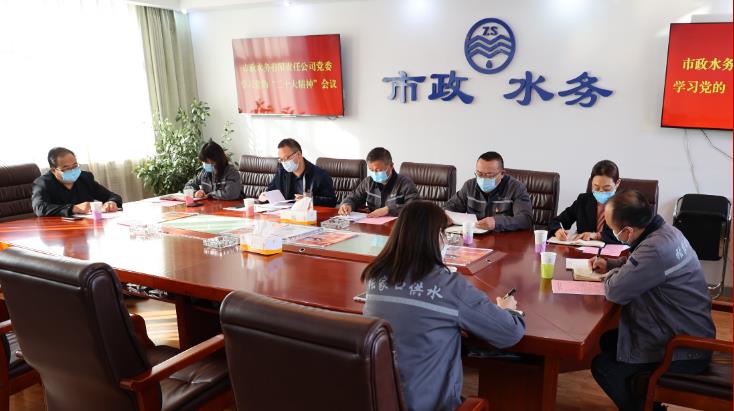 在党的二十大闭幕后,公司领导班子第一时间召开党委会,传达学习贯彻党的二十大精神。会上,公司党委书记、董事长向全体水务人发出号召:“要认真谋划贯彻落实党的二十大精神的重点举措。迅速掀起学习贯彻党的二十大精神热潮,引导水务人积极行动起来,沿着党的二十大指引的方向奋勇向前。”
