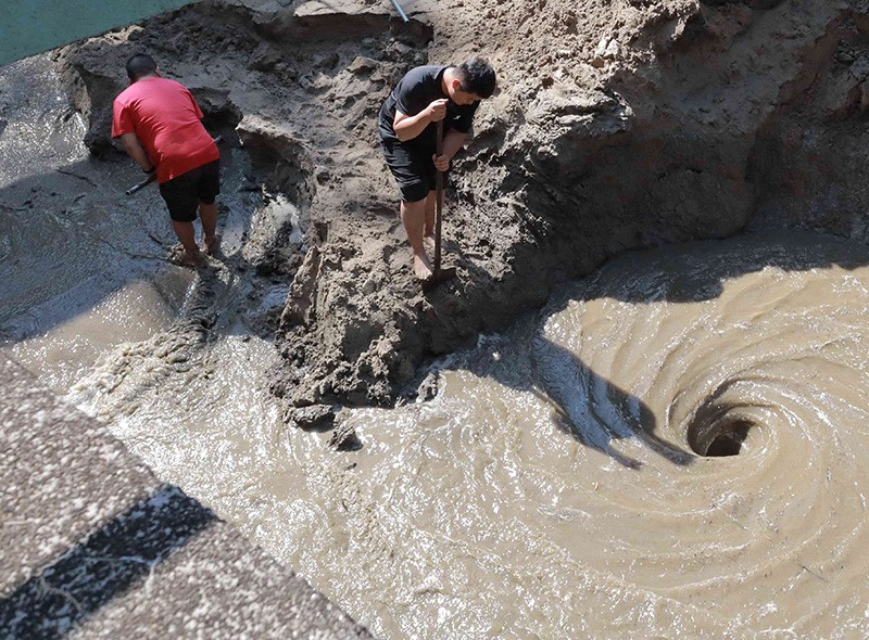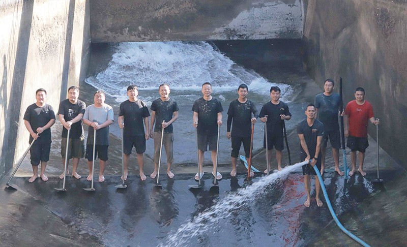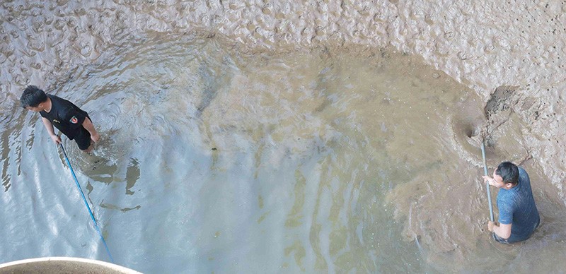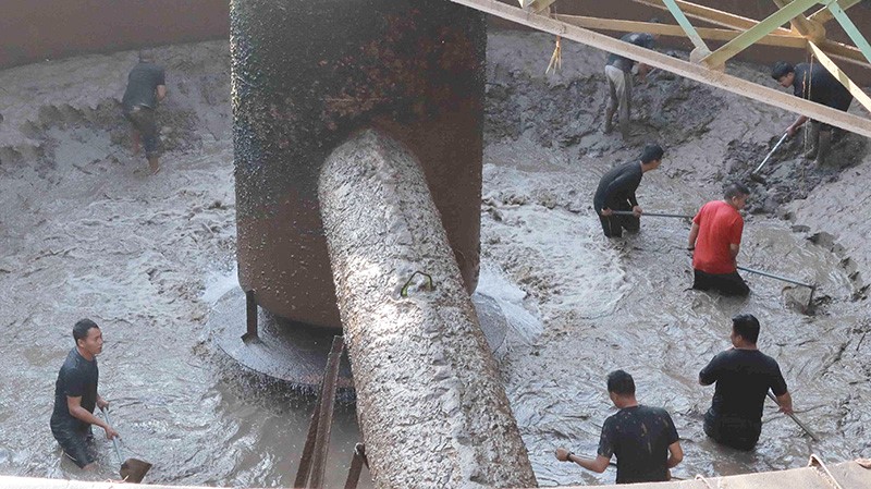 芒市供排水公司清理水厂沉淀池淤泥