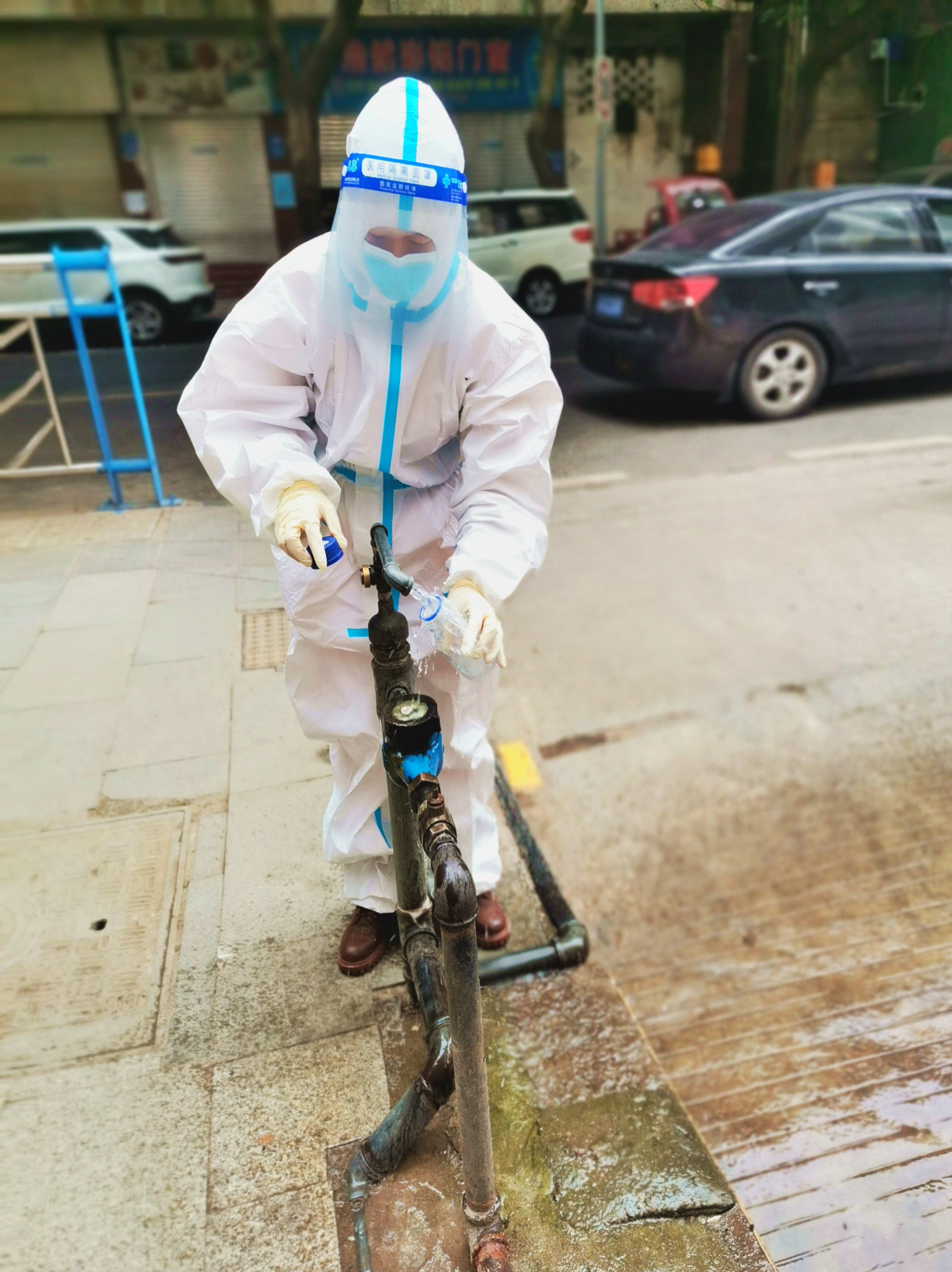 该小区属于临时管控区域,公司管网部维修科值守工作人员左泳和程宇航接到信息后,立即做好防护赶赴现场。
