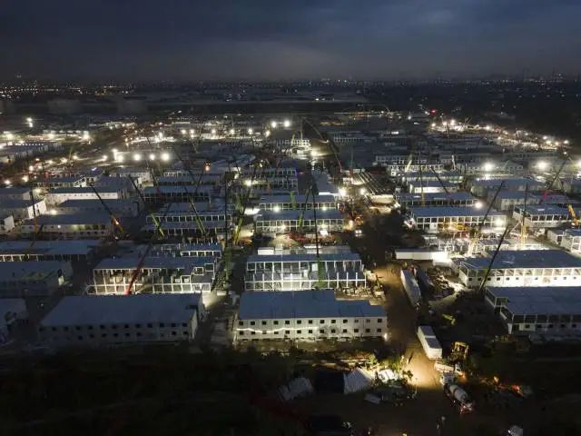 广州南沙健康驿站夜间建设现场(南方日报 供图)