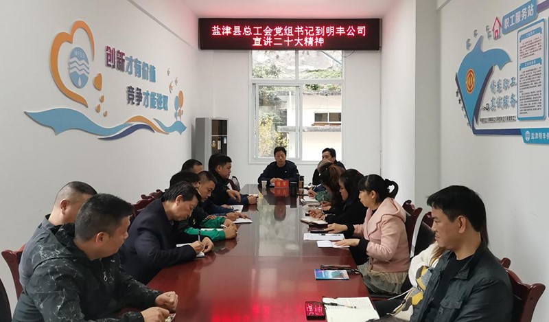 蓝图催人奋进,时代呼唤奋斗。为深入学习宣传贯彻党的二十大精神,持续掀起“大学习”热潮,11月22日,盐津县总工会党组书记、常务副主席刘军到明丰供水公司进行党的二十大精神宣讲。刘军同志以《把握好习近平新时代中国特色社会主义思想的世界观和方法论》为题,从“必须坚持人民至上、必须坚持自信自立、必须坚持守正创新、必须坚持问题导向、必须坚持系统观念、必须坚持胸怀天下”六个方面深入解读和阐释了党的二十大报告,引导员工坚持全面准确深入学习领会党的二十大精神。
