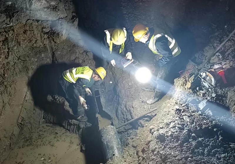 宣讲过程中,接到市民热线电话告知:水田新区建设施工导致供水主管道爆管,影响县城居民正常生活用水。公司立即将二十大精神贯穿到实际工作中,组织安装队成员赶赴现场,迅速组织现场勘查并实施抢修。到达现场后,抢修人员及时对周边管网阀门进行关闭止水,快速清理积水,精准定位漏点,开挖漏水点,随后严格按照操作规程迅速开展抢修作业。由于抢修难度大,施工困难,抢修人员充分发挥实干担当精神,争分夺秒连夜抢修,最终成功恢复供水。