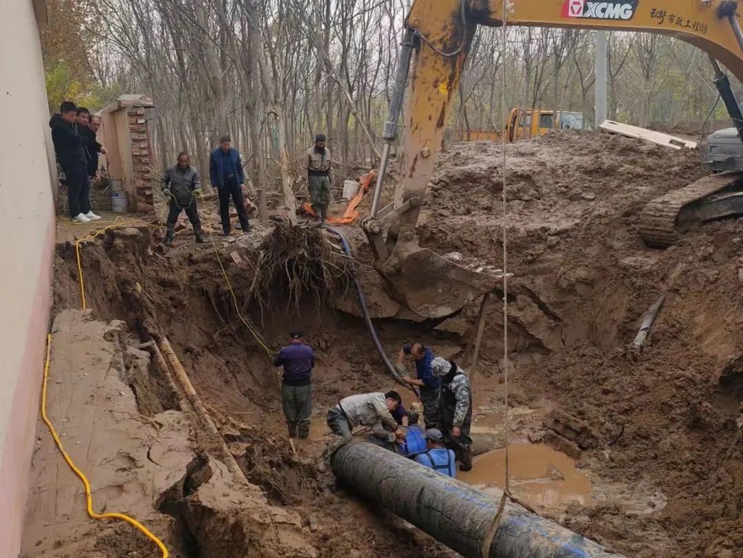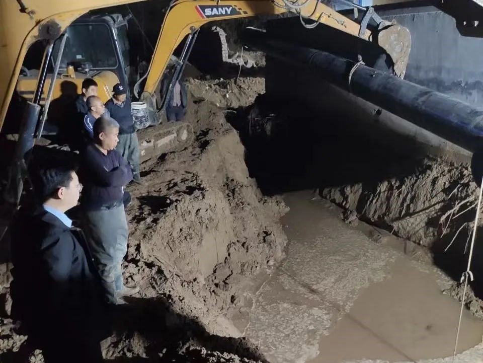 由于破裂管道为供水主管道,管道内存水较多,不断向外流水,为抢时间,不等作业坑内积水抽干,抢修人员就跳入冰冷的水中,进行切割抢修作业,争分夺秒。由于土壤水分过度饱和、呈流沙状态,导致周边多次塌陷,清理作业面难度大。抢修员工泡在冰冷的泥水里,不分昼夜、轮班上阵,机械不能用就人工用锨挖镐刨,困了就在车内躺一会,饿了吃口泡面,全部坚守在抢修岗位,无一人撤离“战场”。为了能让老百姓早些恢复吃水,他们毫不退缩,迎难而上,手抬肩扛,手握冰冷的工具,挖掘、切割、连接,丝毫不敢松懈。初冬的深夜,温度已接近冰点,额头滚烫的汗水和身上冰冷的泥水,在微弱的灯光下,显得格外耀眼。