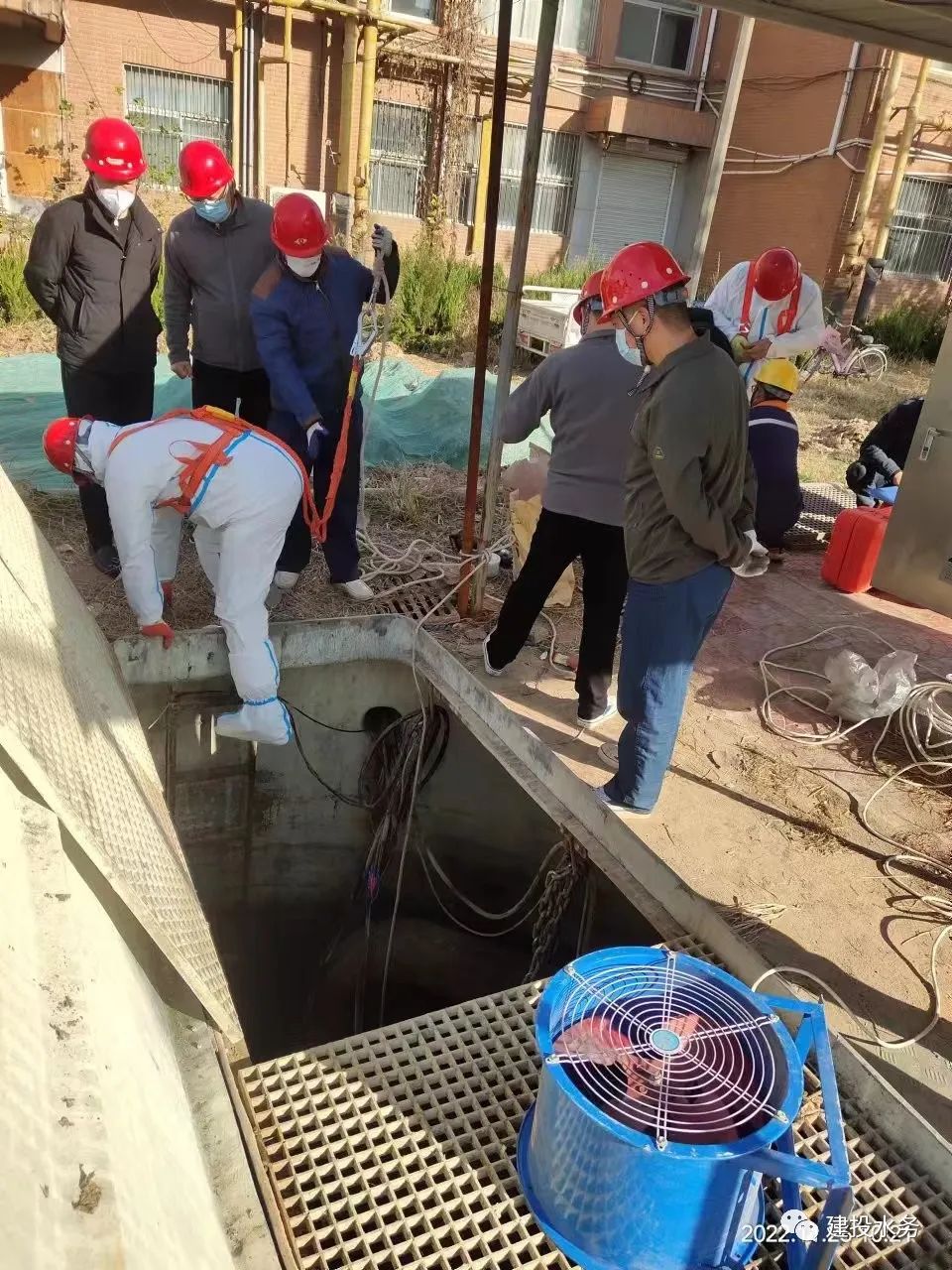 通过巡查,建投衡水水务振华污水处理公司发现一体化泵站二号泵漏水问题严重。为保证冬季运行异常时向衡水市润坤污水处理厂的应急输水量,公司立即组织人员进行维修。由于此次维修属于有限空间作业,作业前机修车间安全员赵辉对正压式呼吸器、有害气体检测仪、安全绳和安全带等安全用具进行了细致检查,确保可靠正常使用。11月26日,因疫情排查期间维修人员较少,在供水事业部维修值班人员紧急支援下,维修工作突击进行。现场填写作业票、进行安全交底、检查现场通风、检测有害气体指标及安全器具配备齐全,并明确现场指挥、监护和作业人员......整个流程严格按照有限空间作业操作规程进行。待井下水位降到最低,对井底进行冲洗和通风,两台气体检测仪均未检出有害气体浓度后,机修科长蔡志超和前来支援的供水事业部维修班长贡亮身穿防护服来到井下,进行安装抱箍堵漏和更换导轨固定支架作业。其他人员分工明细、协助配合。经过大家通力合作,有力地缩短了维修时间,仅用不到1小时就圆满完成此次维修任务。