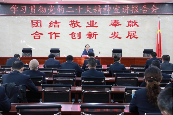 会议最后,贾庆东同志强调,当前和今后一个时期首要政治任务,就是深入学习宣传贯彻党的二十大精神。要按照党中央统一部署,持续在全市兴起学习宣传贯彻热潮,切实把广大党员干部群众的思想和行动统一到党的二十大精神上来。要在全面学习上下功夫,把党的二十大报告和习近平总书记近期一系列重要讲话结合起来一体学习领会,做到对“是什么、干什么、怎么干”了然于胸。要在全面把握上下功夫,做到知其言更知其义、知其然更知其所以然。要在全面落实上下功夫,公司要从自身实际出发,切实把党的二十大精神转化为工作思路、具体对策和实际行动。党员干部都要扑下身子当好“施工队长”,推动党的二十大精神在我市落地生根,形成生动实践。