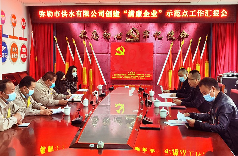 公司支部书记鲁跃军同志向纪委刘书记全面汇报了公司建设“清廉企业”工作情况:弥勒市供水公司在市委、市政府的坚强领导下,在市纪委、派驻市住房城乡建设局纪检组的督促指导和驻企挂职书记的指导下,持续开展党风廉政建设和反腐败工作,发扬集体主义精神、加强廉洁自律,传承家风家教、解放思想锐意进取,引领全体职工以更加饱满的热情、更加优良的作风、更加高效的服务,为群众办实事、做好事,打造党风好、政风清、行风正、人民满意的供水队伍。