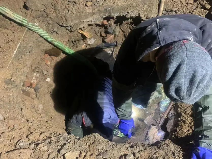 因爆管处周边地下高压电缆、通信光缆和燃气管道等分布错综复杂,天寒地冻加上混凝路基,只能采取破碎锤与人工开挖相结合,加上又是夜间作业进度非常缓慢,给加快抢修进度带来极大不便。如果采取调闸低压供水等天亮再修,虽然符合24小时内恢复供水的服务时限,综合考虑当前疫情防控形势和受影响停水区域范围,一定要让居家市民和其他用户最晚大清早打开水龙头就有水可用。公司领导当场拍板不管早晚连夜完成抢修。