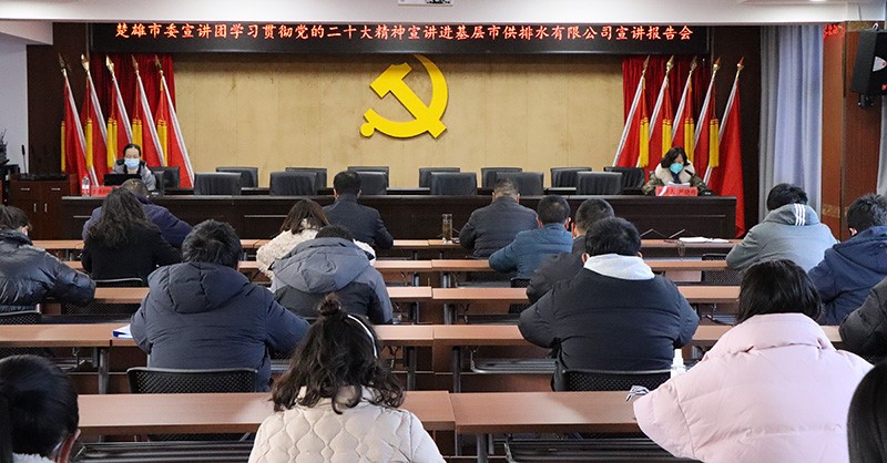 为深入学习贯彻党的二十大精神,12月28日,楚雄市供排水公司党总支组织召开楚雄市委宣讲团学习贯彻党的二十大精神宣讲进基层市供排水公司专题宣讲。