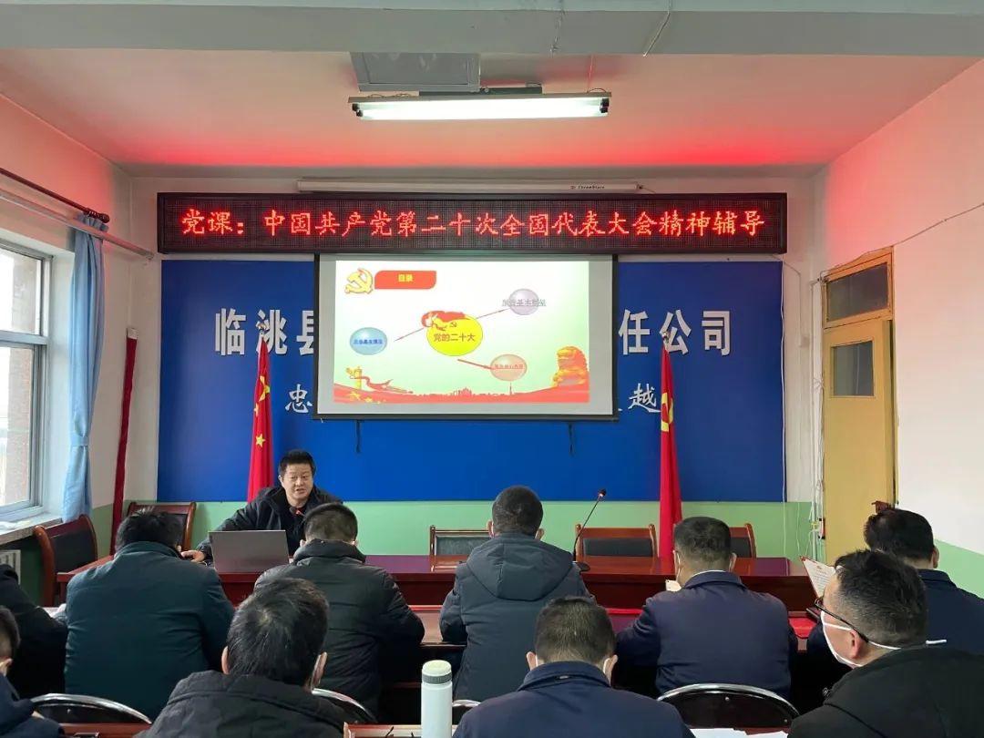 邀请中共临洮县委党校常务副校长孙科峰讲党课,以学习贯彻党的二十大精神为主线,作了《高举旗帜、勇毅前行、奋力谱写全面建设社会主义现代化国家崭新篇章》专题辅导讲座。从大会基本情况、大会报告基本框架、大会报告核心内容等方面深入解读了党的二十大报告。学习宣传贯彻党的二十大精神是当前和今后一个时期全党全国的首要政治任务,事关党和国家事业继往开来,事关中国特色社会主义前途命运,事关中华民族伟大复兴。学习领会党的二十大精神,必须坚持全面准确,深入理解内涵,精准把握外延。牢记“国之大者”,全面增强本领,弘扬建党精神,埋头苦干,促进供排水事业再上台阶,再谱新篇,以实际行动,为中国式现代化全面推进中华民族伟大复兴的宏伟目标做出新的贡献。