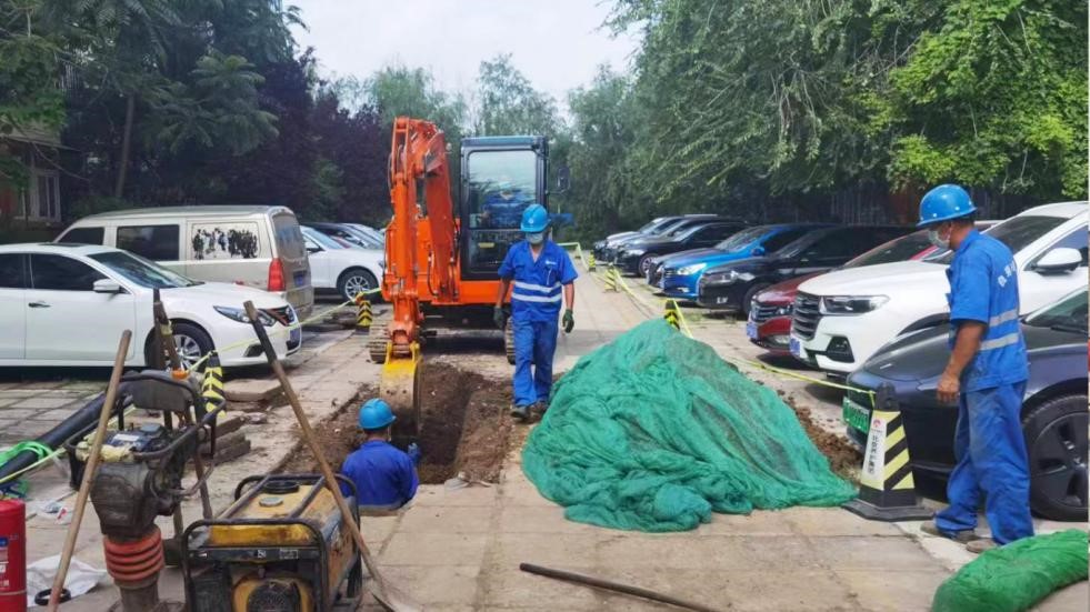 有效工期短是今年开展置换工程面临的较大难题。为此,集团借助三级对接协调机制,充分做好勘探调研、制定方案、对接协调等前期工作,为后续顺利开展施工奠定良好基础。由于多数自备井小区原有管线图纸不全,且各类地下管线错综复杂,施工单位要彻底摸清管线位置,才能准确制定施工方案,避免在施工中误伤其他管线。同时,集团与属地社区和物业加强沟通对接,通过社区积极宣传自备井置换的重要意义,争取居民理解和支持。具备进场条件后,集团立即组织优势力量,必要时多个作业面同时开展施工,确保小区如期通水。