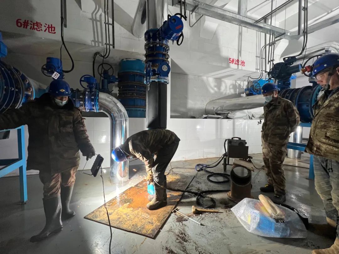 该工程1月8日开工,预计18日完工。为了不影响市民日间正常用水,工人们利用每晚11点到凌晨4点的用水低峰时段进行施工,施工内容包括为二水厂滤池的进水管道焊接三通,安装阀门,以热熔PE管道的方式,连接曝气池到滤池的出水管道,实现出水管道的优化升级,提升水处理量。目前,工人们已在岗位上连续奋战了4个夜晚,他们以饱满的工作热情,为工程圆满完工全力以赴。
