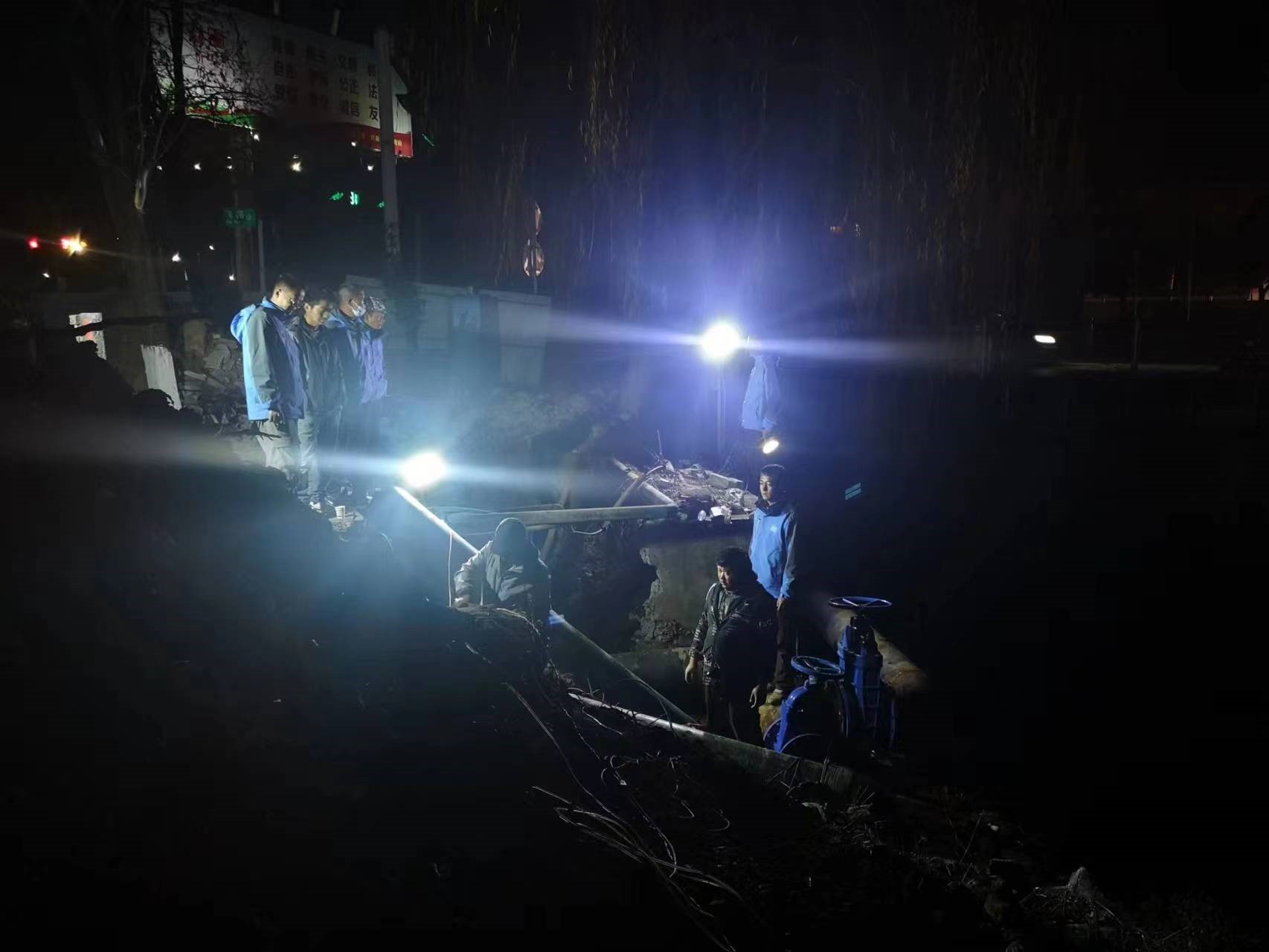2023年1月7日,洱源县DN400城市供水管网改造工程滨河路工地上灯火通明, 冬日的寒风刺骨,户外温度更是难以适应,工作坑里焊花飞舞,施工人员克服困难,干劲十足。大家争时间抓效率,加班加点不停歇,以饱满的精神状态、高昂的士气全力以赴投入改造工程,全体施工人员发扬连续作战的精神,采取了分组施实,昼夜交替施工作业的模式,连续奋战两天两夜,滨河路供水主管网改造工程如期完工。