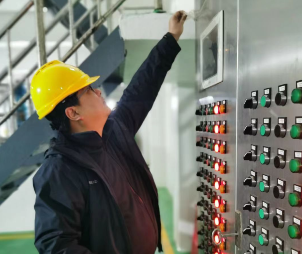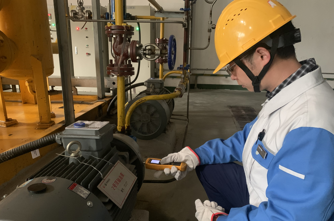 刘光贵是江西洪城康恒环境能源有限公司的主控,负责生活垃圾焚烧发电项目的设备生产运行。已经连续3年春节值班的他,家乡远在三四百公里外的赣州,今年仍然选择在岗位上“就地过年”,为运行平安守岁。大年初一,刘光贵正在设备间例行巡检,对顶轴油泵进行测振工作,机器的嗡鸣像新年的鞭炮声不绝于耳,“这些机器看着粗糙,其实精细得很,测得数值大小可以反应机器情况,提前发现安全隐患,是我们保障安全生产的基本要求。”