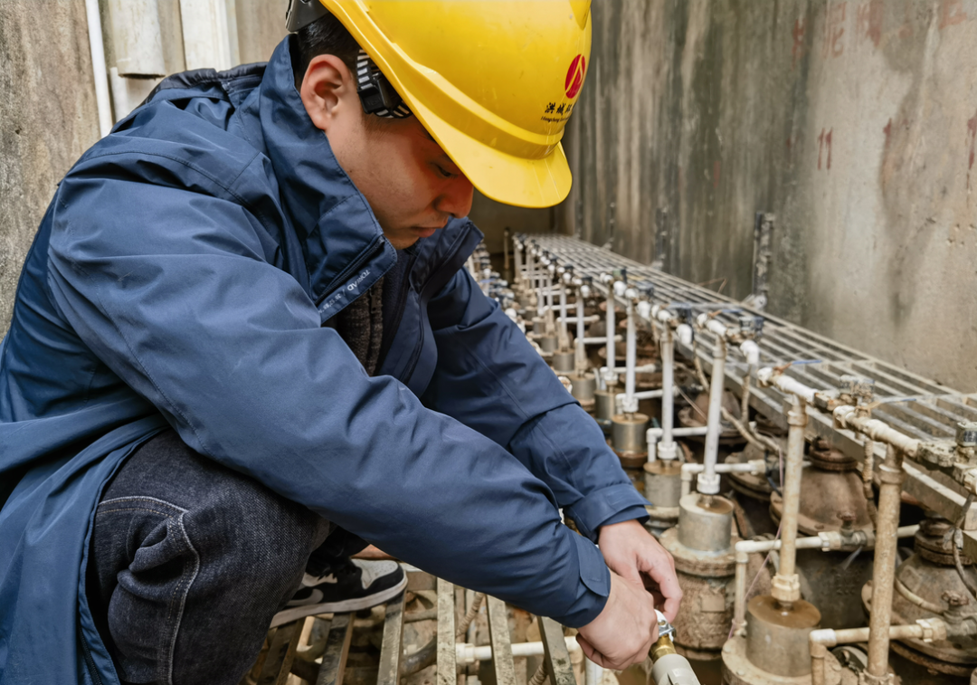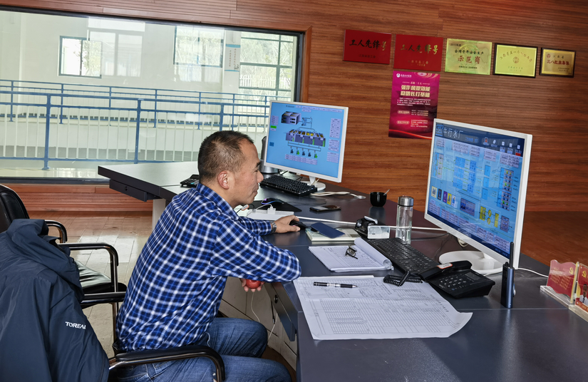 大年初一,电工技师刘泽中一大早就已经背着工具箱,开始厂区全线线路检查工作,刘泽中检修电气设备得心应手,他给今年的工作开了个好头。同样忙碌的还有当值运行员们,进厂的流量、药剂的投放……中控室室内巨幕播放的不是喜气洋洋的新春档电影,而是渗滤液处理系统的运行流程,运行员需要目不转睛盯着屏幕,监控、分析数据参数,调度渗滤液和渗滤液浓缩液处理厂的生产运作,确保整个处理系统安全、稳定、有效的运行。