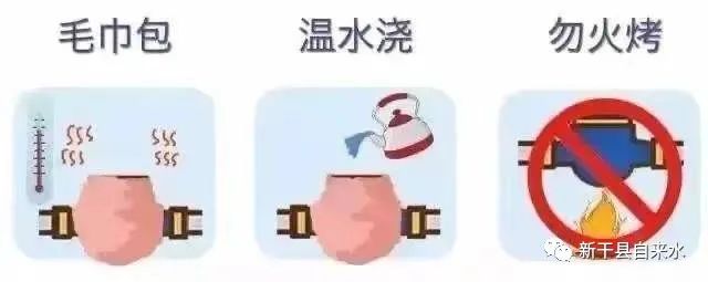 1.水表管道保温:暴露在室外的水管、水表、水龙头等用水设施,建议使用保温绵进行包扎保温,如果没有保温棉,也可用旧棉衣等棉麻织物包裹防冻。水表井内可以放置旧衣物或泡沫塑料等物品做好保温防冻,同时水表箱盖或管道井门不要随意开启保持密封,可有效防止水表管道冻堵。