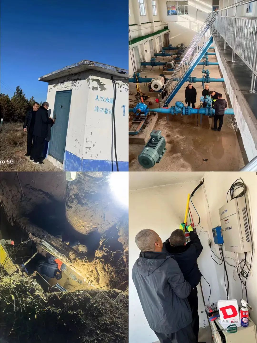 供水一线值班人员全天在岗,密切关注水位、水质、水压的变化情况,加强对水源井、供水管网、电机、水泵、配电柜等设备的巡查和维护,做好防冻处理,及时消除检查中发现的安全隐患事故,备足设备抢修物料,随时应对供水抢修。努力做到“小修不停水、大修不过夜”,有报即接,接报即修,全力以赴保障供水平稳有序。